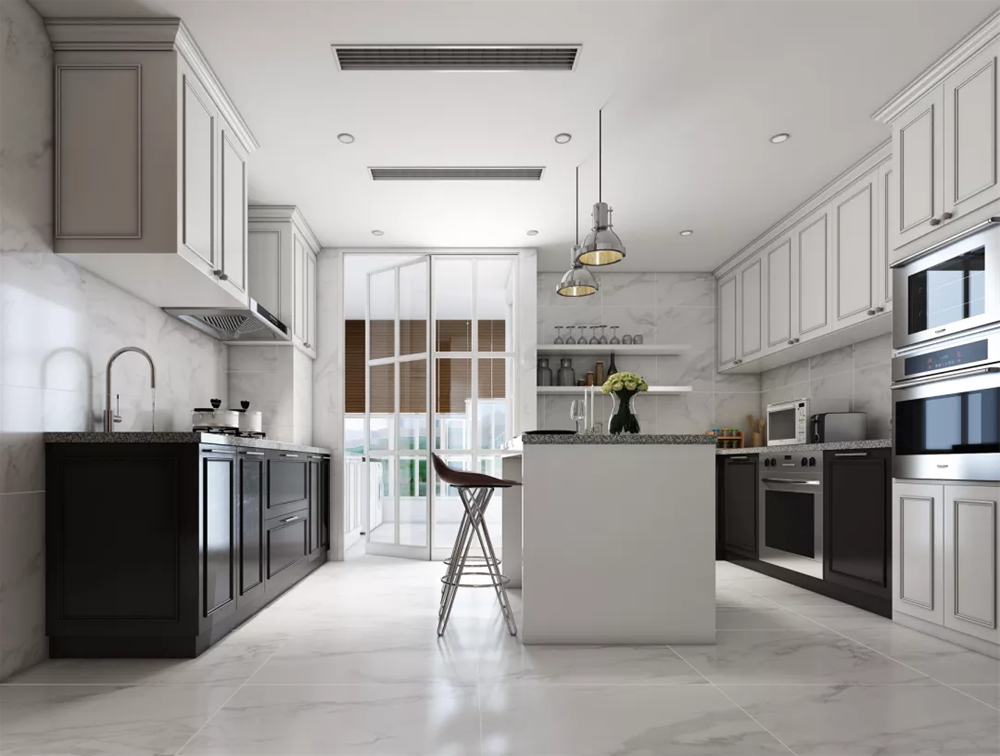 在廚房設計時,小伙伴們還可以嘗試新風系統,盡快排除廢氣,降低溫度。另外,小伙伴們還要時常清理廚房,從根本上斷絕異味來源。
